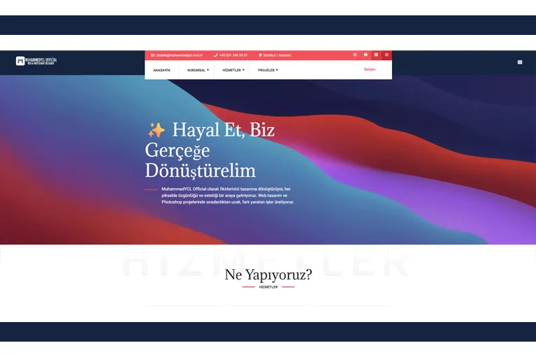 Tasarım, sadece bir görsel değil; bir duygu, bir hikâye, bir etki yaratma sanatıdır. MuhammedYCL Official olarak biz, sıradanın ötesine geçmeyi, her projede özgünlüğü ve yaratıcılığı ön plana çıkarmayı hedefliyoruz. Her pikselin bir anlamı, her renk tonunun bir hissi olduğunu biliyoruz. Bu yüzden çalışmalarımızda yalnızca estetiğe değil, aynı zamanda markanın ruhuna da dokunuyoruz. Web tasarımda kullanıcı deneyimini merkeze alıyor, ziyaretçilerinize sadece bilgi değil, deneyim sunan arayüzler tasarlıyoruz. Photoshop projelerimizde ise görselleri sadece düzenlemiyor; onlara kimlik, derinlik ve anlam kazandırıyoruz. Bizim için tasarım, kalıpların dışına çıkmak demektir. Her projede “daha önce yapılmamış olanı” arar, fikirleri özgür bırakırız. Çünkü inanıyoruz ki en güçlü tasarımlar, özgür düşüncelerden doğar. MuhammedYCL Official, yenilikçi yaklaşımı, detaylara gösterdiği özen ve sınırsız yaratıcılığıyla farkını ortaya koyar. Sadece bir tasarımcı değil, markanızın dijital yolculuğundaki yaratıcı ortağı olmayı amaçlarız. Biz, hayal gücünüzü gerçeğe dönüştürmek için buradayız.